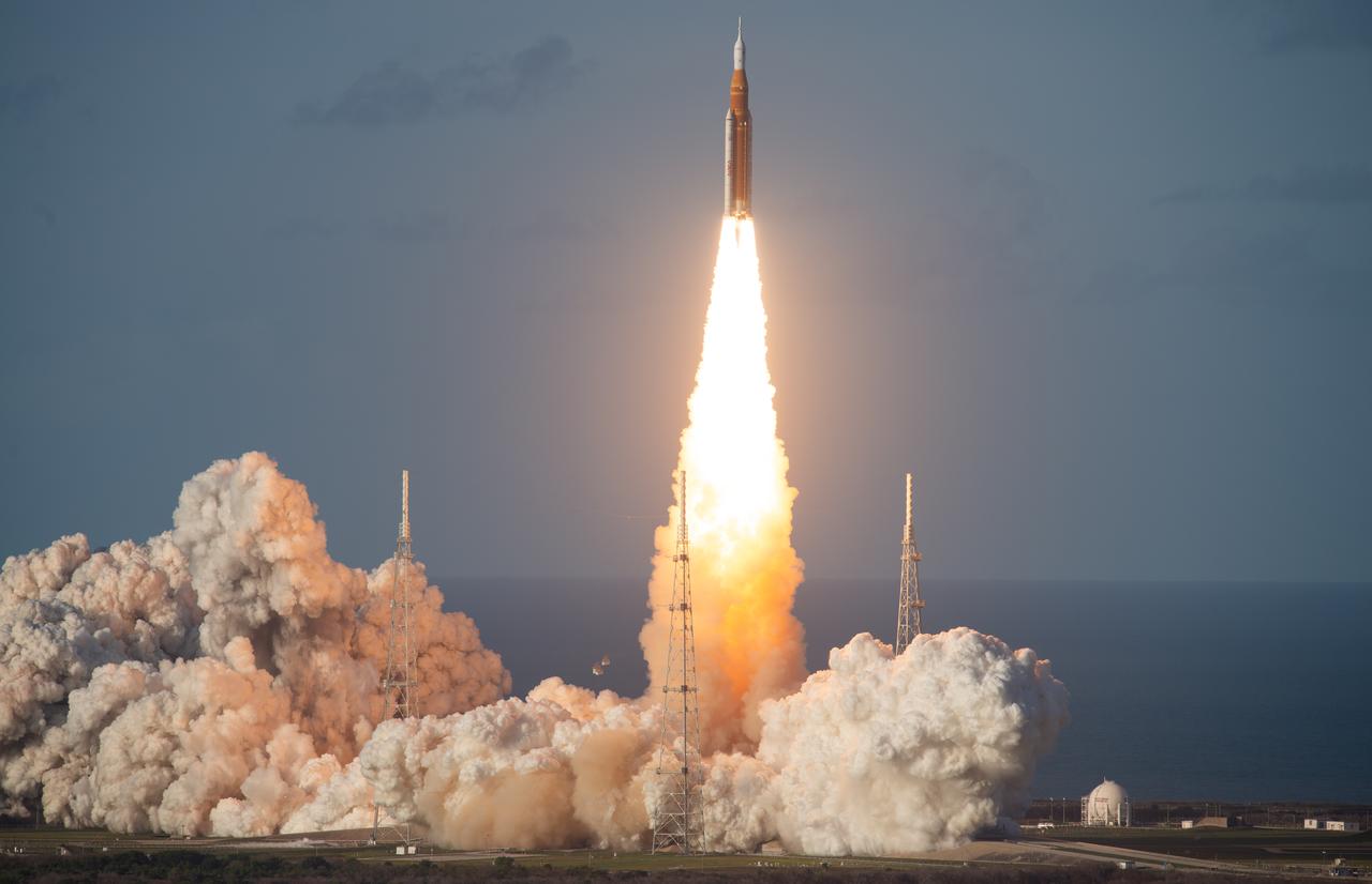 SLS lifts off from LC-39B at Kennedy Space Center, Florida at 6:35PM EDT